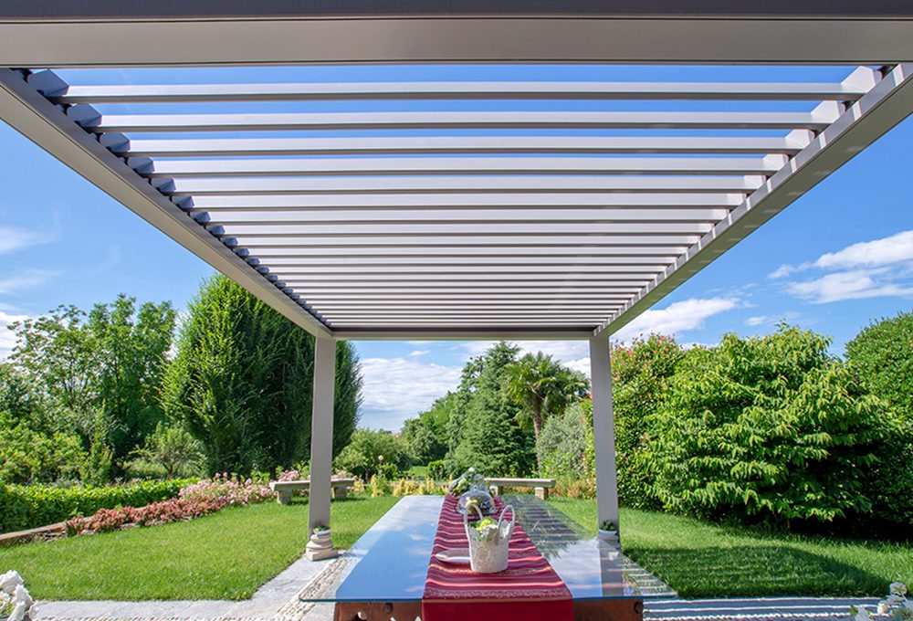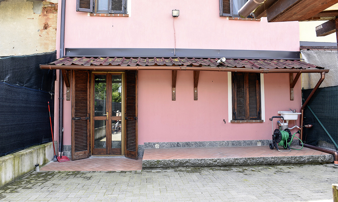 Il cortile sul retro della casa, nell’Astigiano, era poco sfruttato. I proprietari si erano concentrati sull’altro lato, che ha un bel giardino esposto a sud ma troppo caldo per pranzare all’aperto d’estate. Dall’esigenza di mangiare al fresco è nata l’idea: chiudere il portico sul lato nord, poco utilizzato.