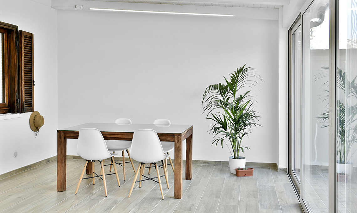 Doveva essere una semplice veranda, invece è diventata il cuore della casa, con un angolo dedicato al relax e uno spazio dove pranzare. Grazie alle due Velux a soffitto e alla scelta di dipingere travi e pareti di bianco, questo ambiente, pur se rivolto a nord, è super luminoso!