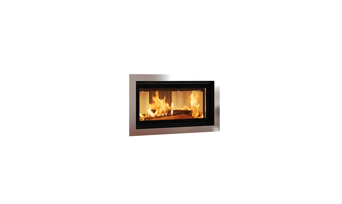 panoramico Monoblocco 1000 Evo con certificazione ambientale 4 stelle. La porta vetro di grandi dimensioni ha apertura a 45° per facilitare la pulizia interna [LaNordica Extraflame, cm 113,6x59,7x 151,2h €3.500].