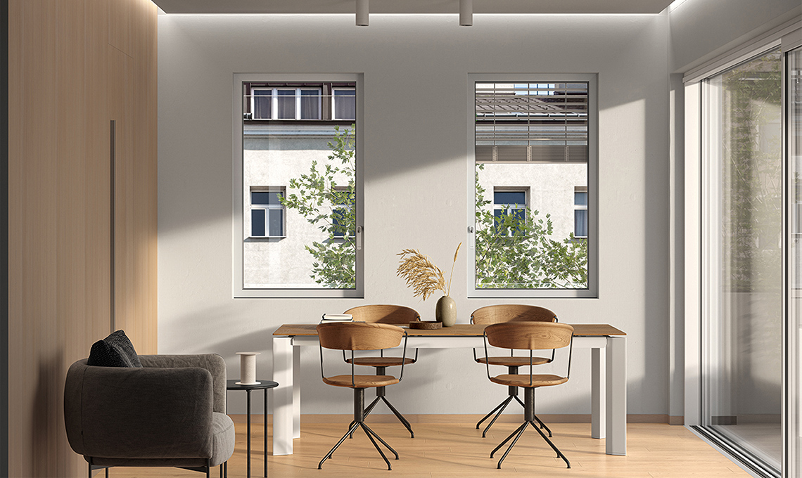 spesso 4,6 cm, la finestra in alluminio a 2 ante Top TB65 Minimale rientra nei requisiti richiesti per la zona climatica F, grazie a un’ottima trasmittanza termica, pari