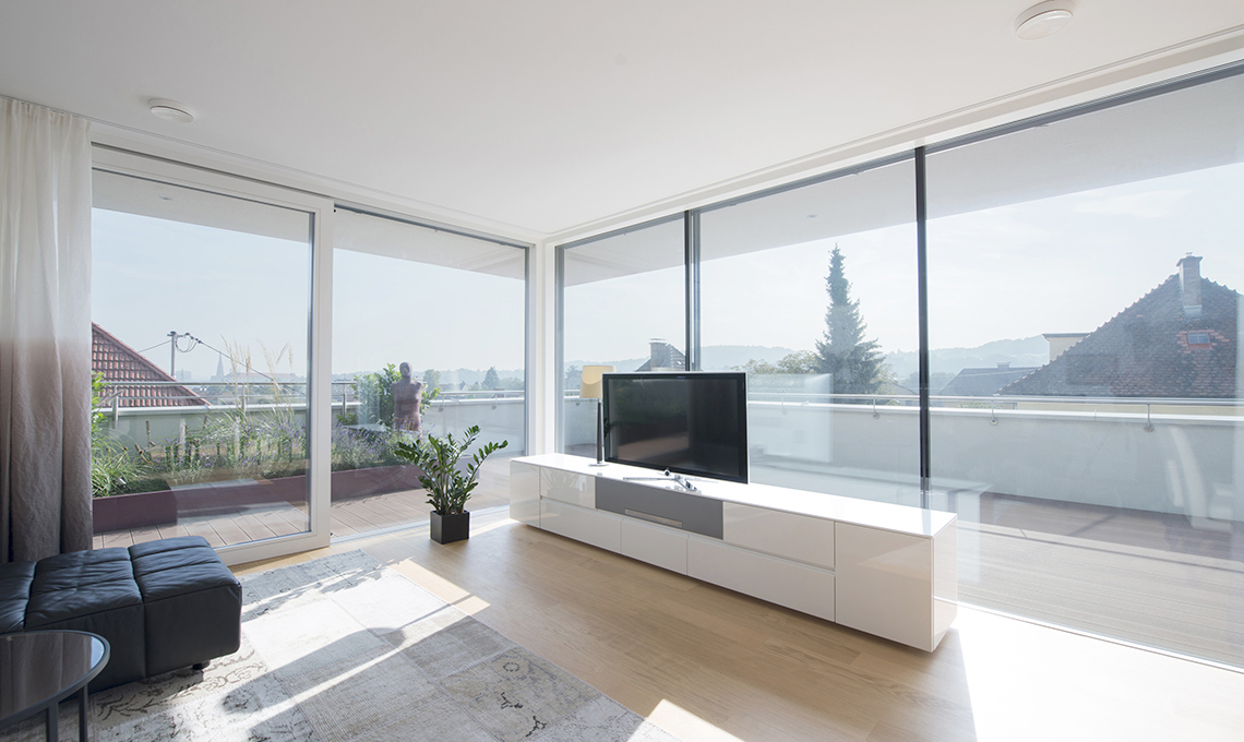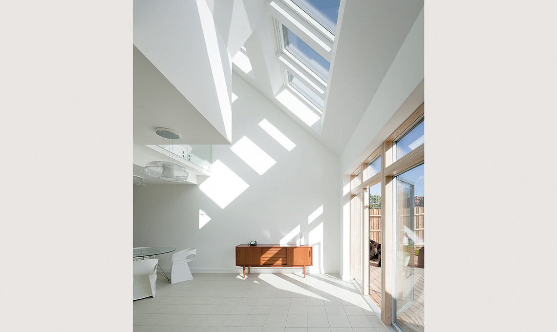 In legno rivestito di poliuretano, la finestra da tetto GGU Integra Elettrica ha vetro protettivo esterno temperato ed è dotata di un sensore per l’auto-chiusura in caso di pioggia.