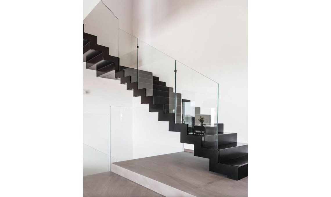 SCALA A 2 RAMPE Per chiudere il sottoscala la scala deve avere gradini ad alzata chiusa, quindi privi di spazi vuoti tra le pedate. Ogni rampa deve avere massimo 15 gradini, con pedate profonde almeno 25 cm e alzate di 15-17 cm. In foto, scala in acciaio Knee TR 10 [Roversi, su progetto].