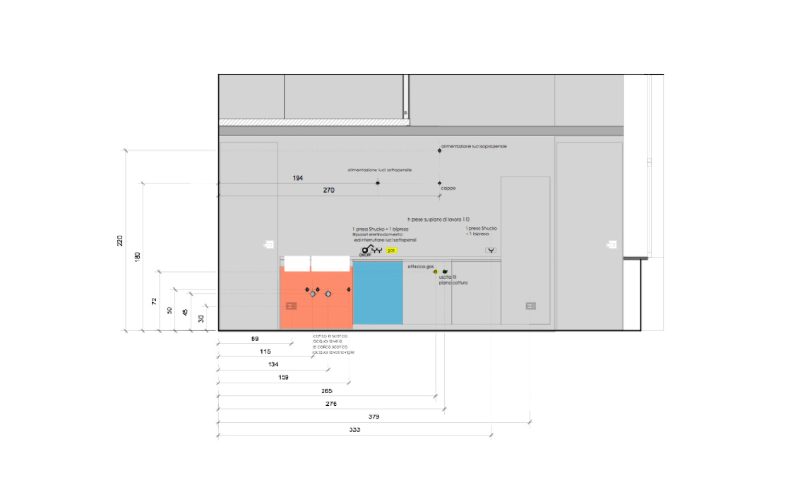 - Necessario prevedere anche una presa sfumo perché alcuni tra i piccoli elettrodomestici potrebbero averne bisogno.