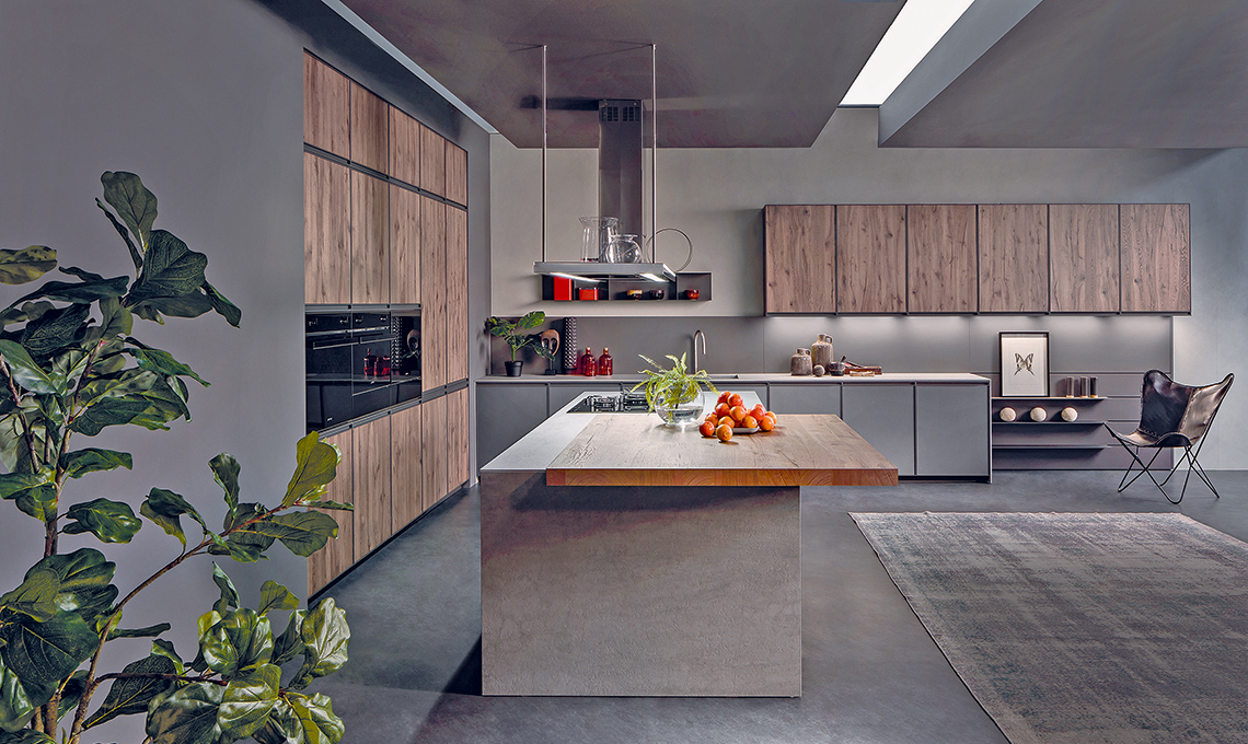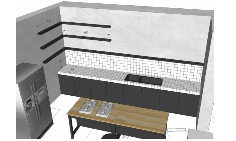 - Per l’illuminazione generale serve una sospensione centrale e per il piano di lavoro una barra a led sottopensile alimentata da un interruttore sulla parete; per il tavolo o il banco snack, da 1 a 3 sospensioni a 60 cm dal piano.