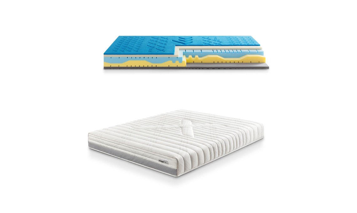 Il cuore in Gravityfoam ad alta densità garantisce sostegno strutturato e stabilità, il Memory riduce i punti di pressione e la tecnologia Aquapore Gel garantisce traspirabilità. Per chi soffre di mal di schiena e dolori articolari.