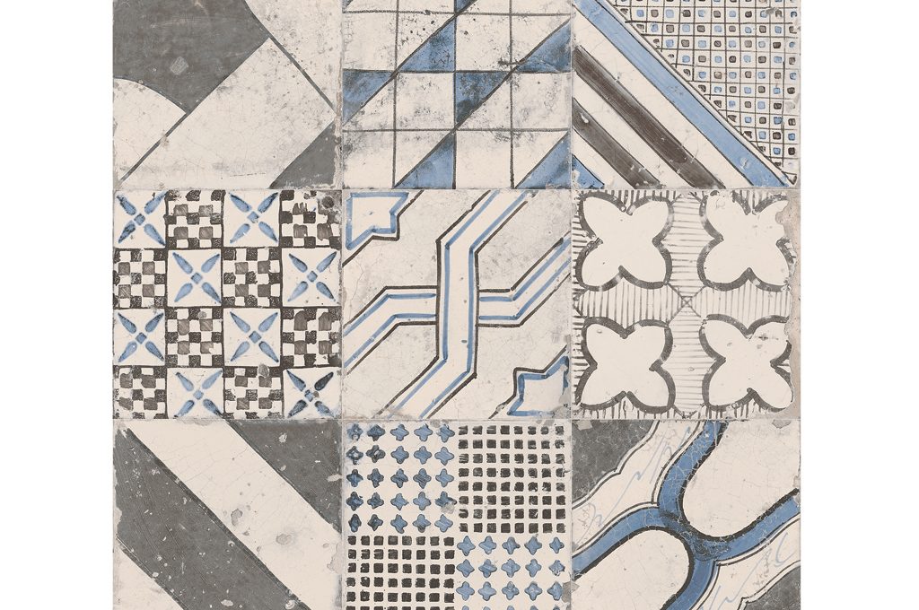 Richiama le maioliche tradizionali la collezione Azulej in grès smaltato [Mutina, cm 20x20, €150/mq].