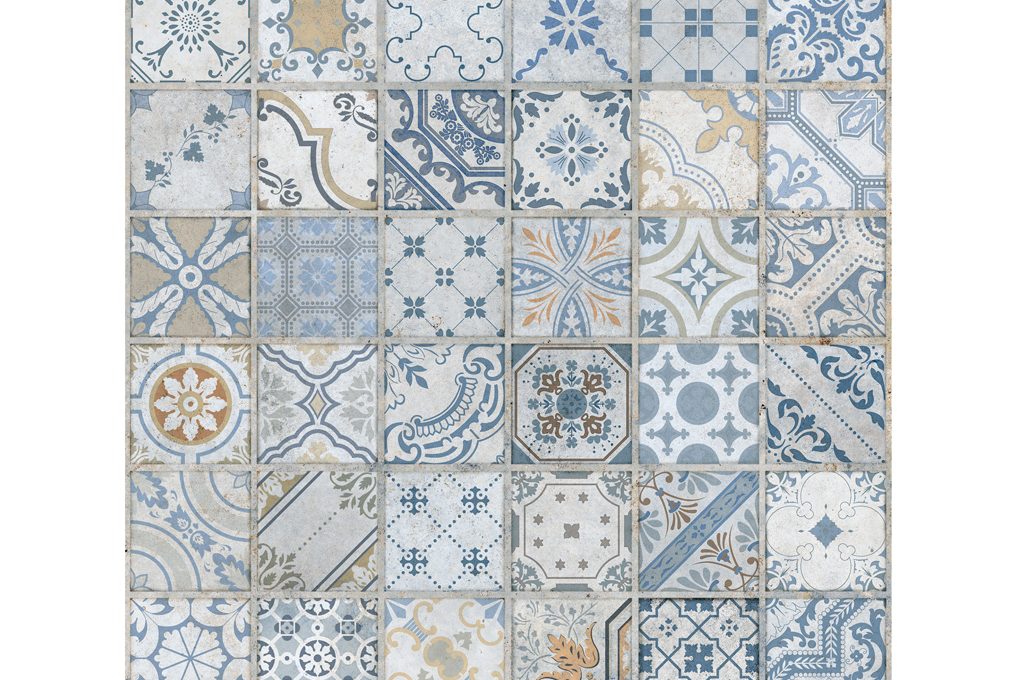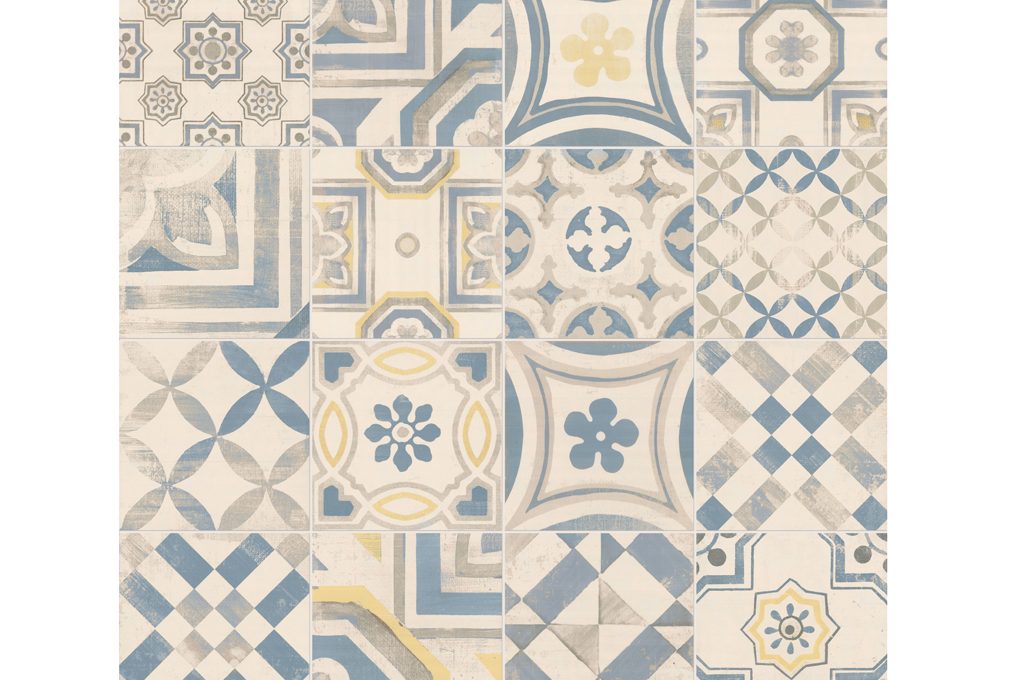 Effetto mix&match per le piastrelle Frame decoro Majolica Random in grès porcellanato [Refin, cm 60x60 prezzo da rivenditore].