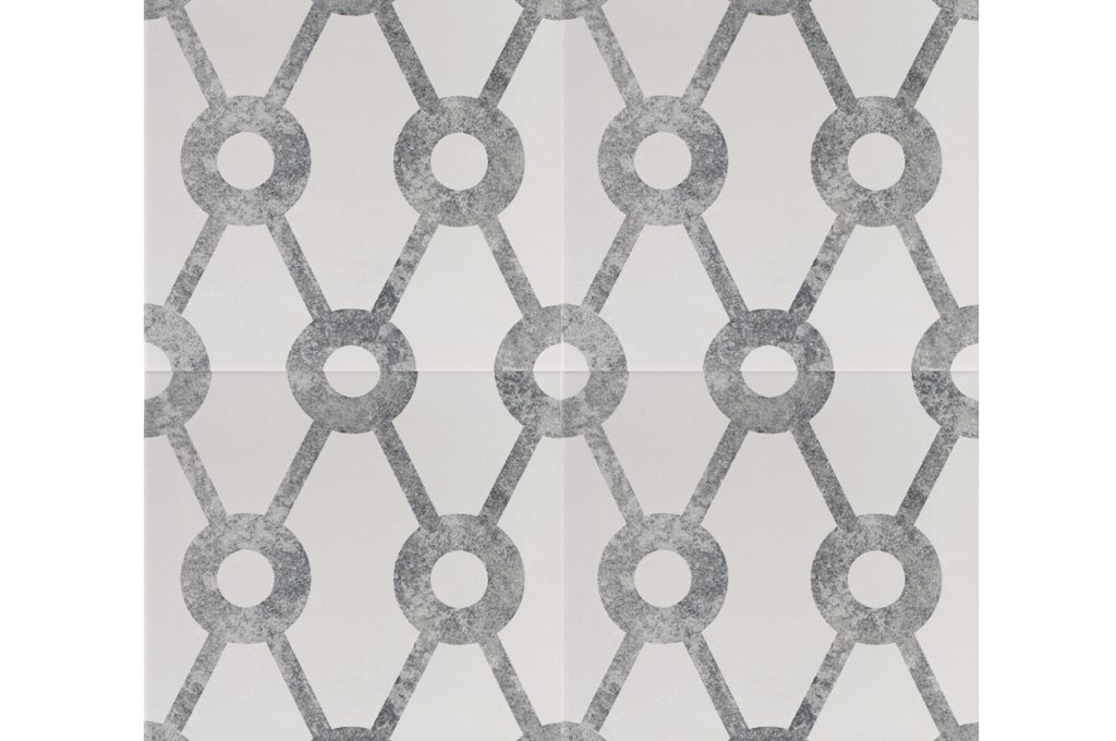 Si posano a terra e a parete le Cementine Infinity in bianco e grigio finite a mano [Valmori, cm 20x20 prezzo da rivenditore].