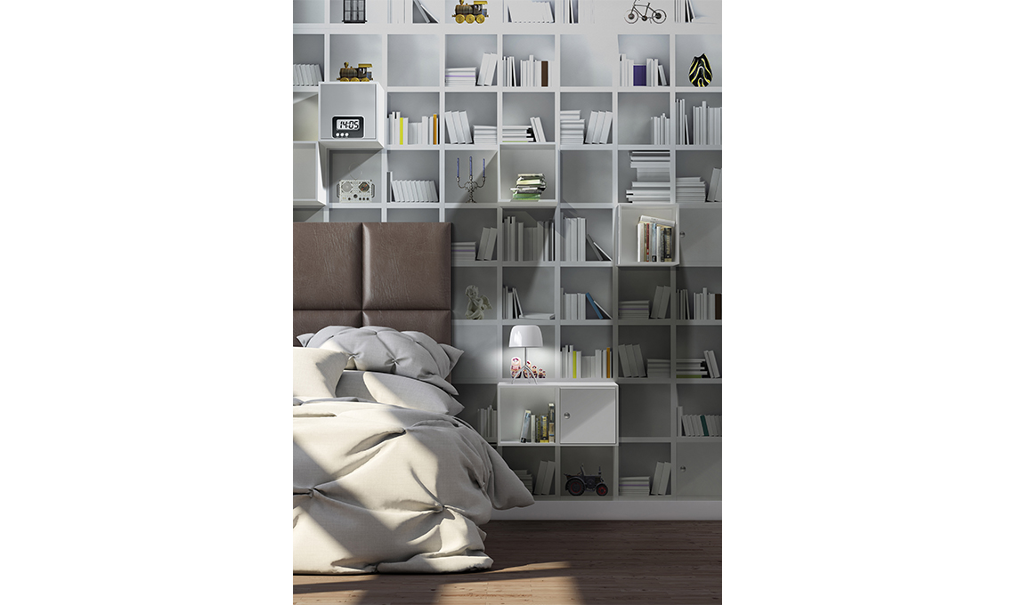 C'è un'altra tendenza in fatto di decoro: la carta da parati che riesce a far comparire l'immagine di arredi che non ci sono. In questo caso si trovano, per esempio, wallpaper che riproducono una libreria e che possono essere poi completate con moduli contenitore reali, in modo da portare all'estremo il dialogo tra illustrazione 2D e realtà 3D.