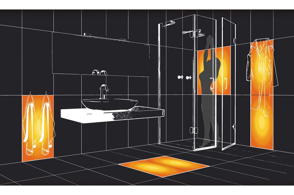 Sembra un bagno de luxe ma 'normale', vero? Invece a terra e a parete le fibre di carbonio assicurano un calduccio confortevole, lo vedi nello schema seguente