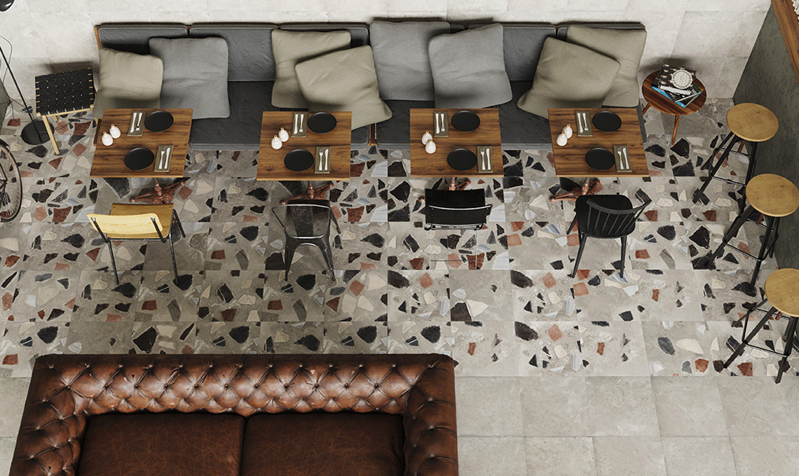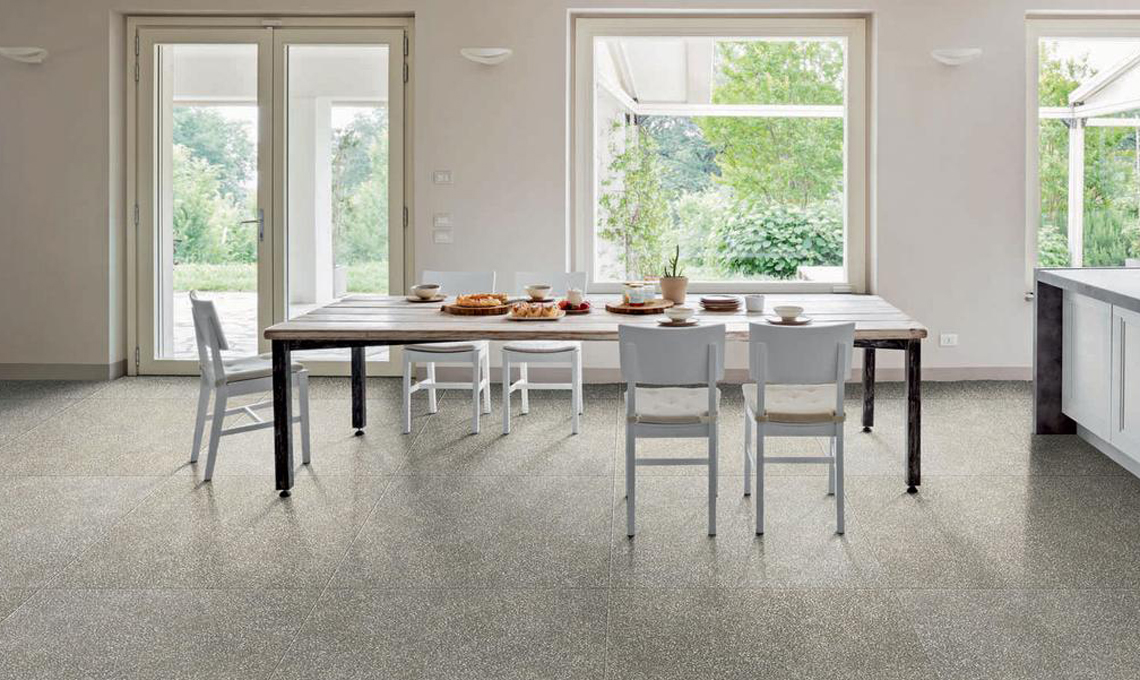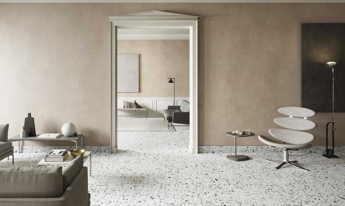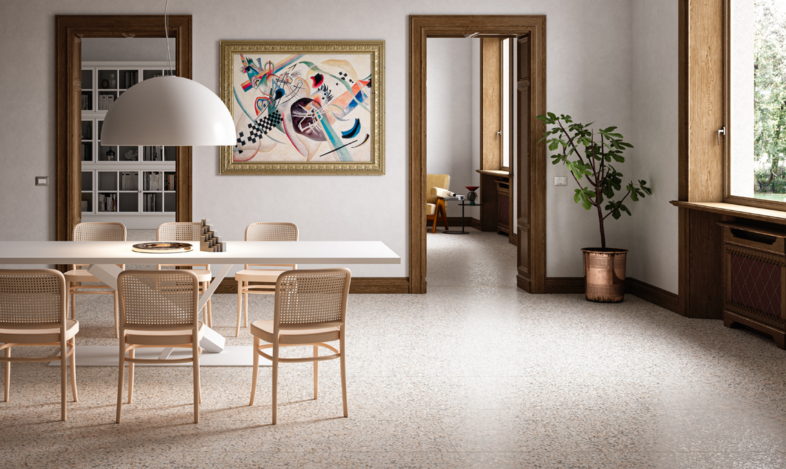Il materiale originale è molto prezioso e delicato, oggi è possibile realizzare pavimentazioni e rivestimenti 'effetto terrazzo' con piastrelle in gres porcellanato, molto resistente, pratico e di facile posa.
