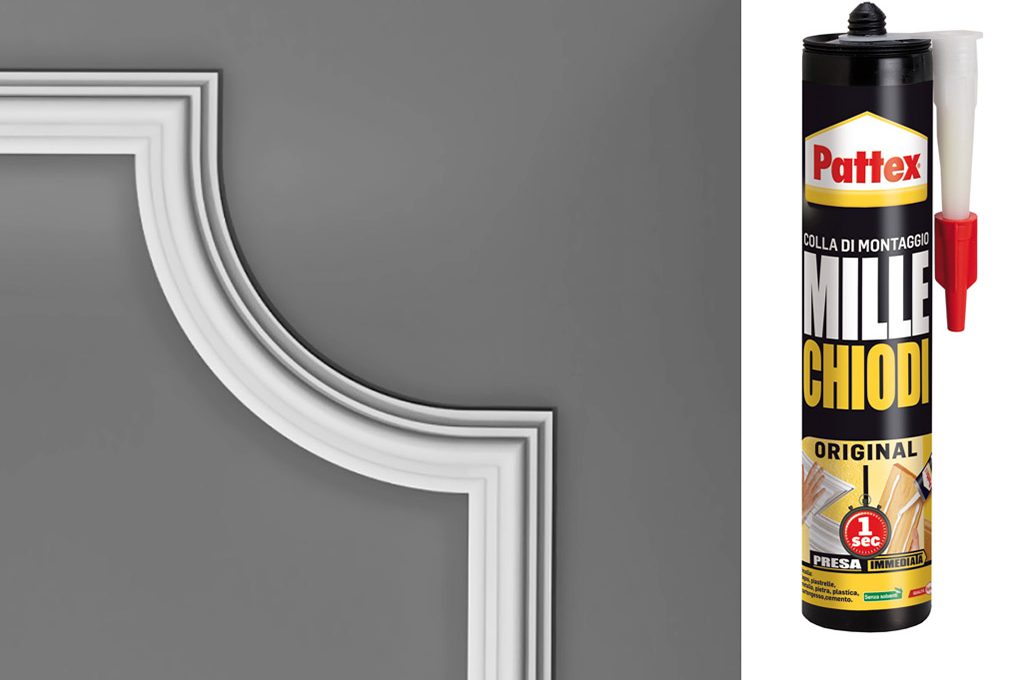 • Taglia i listelli nella misura corretta, stendi sul retro la colla e applicali al muro premendo per il tempo necessario (lo trovi indicato sulla confezione della colla).