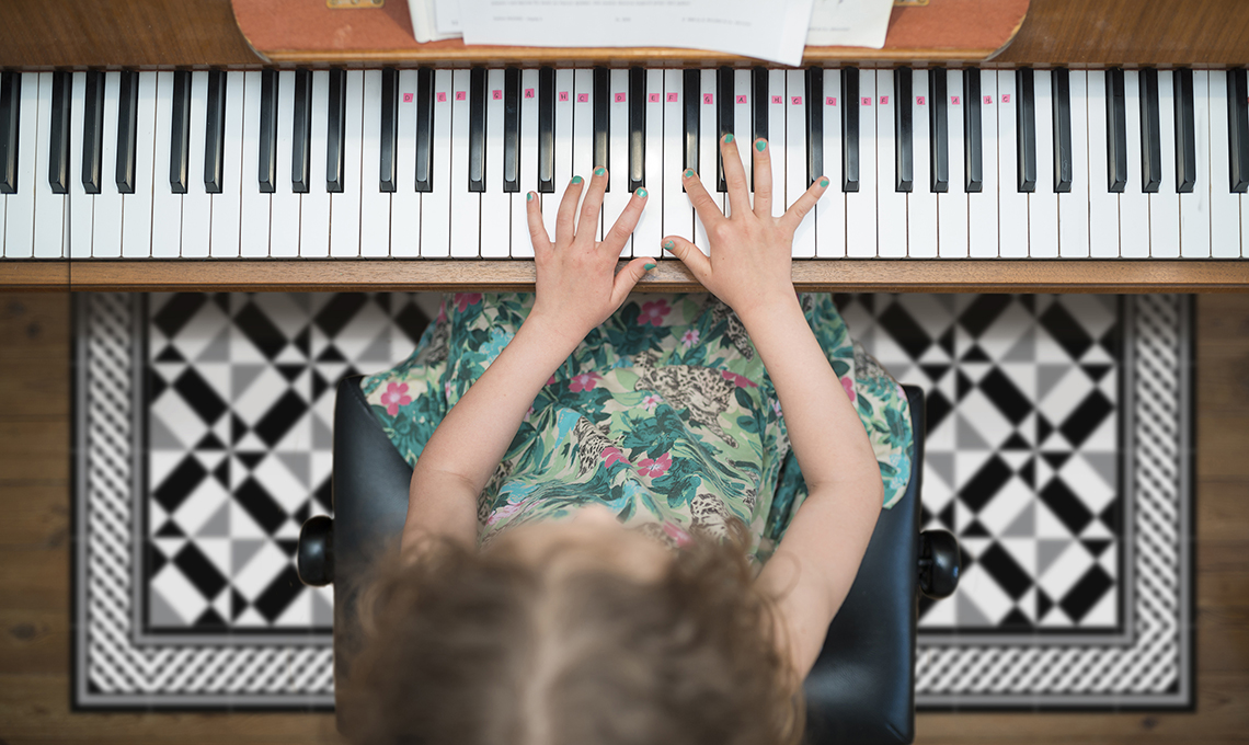 Fasce iper-creative sui muri e riquadri a pavimento che simulano inaspettati tappeti. Basta davvero poco per dare un nuovo look a una stanza! I disegni si ispirano spesso ad antichi motivi geometrici di produzione artigianale.
