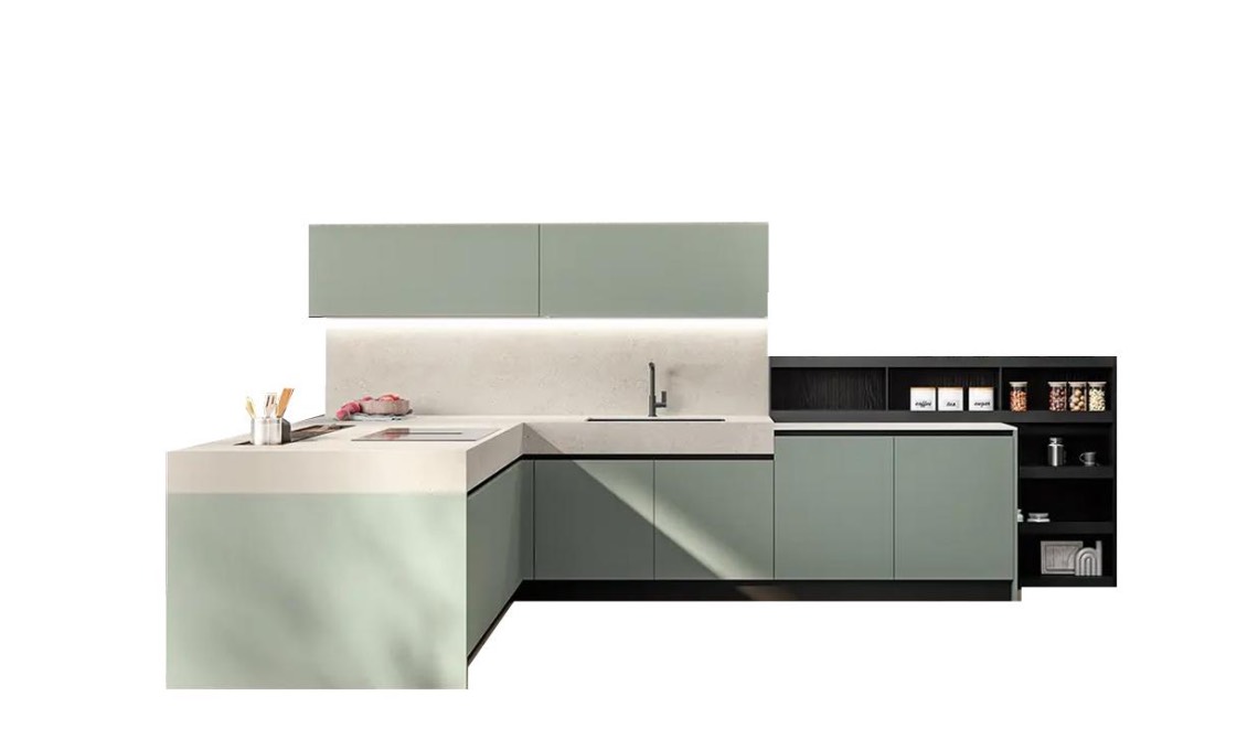 In una cucina, per esempio, puoi giocare con un colore guida, come ilverde salvia, fresco ed elegante, per legare arredi lineari e monolitici attuali. Al contempo puoi lavorare con un colore più vigoroso, come il nero caldo, per sottolineare elementi di dettaglio o complementi.