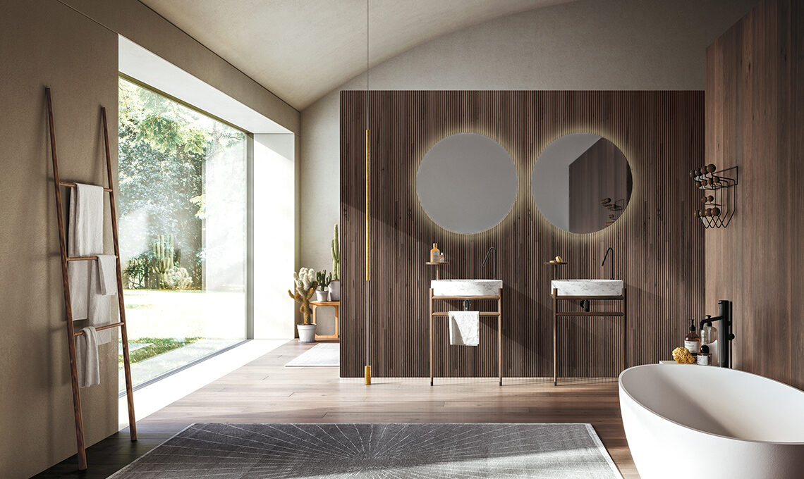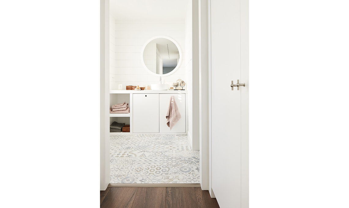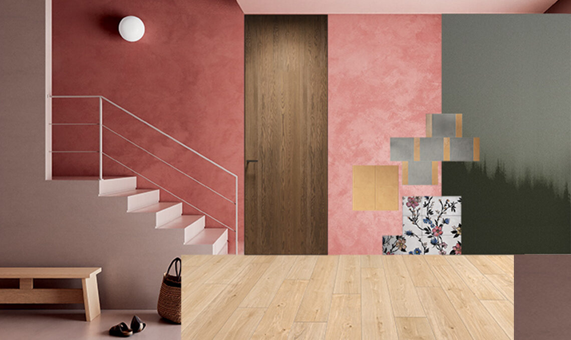 Ceramica e legno richiamano le lavorazioni manuali e la natura, pitture e wallpaper non temono usura né umidità e le microresine regalano un elegante total look.