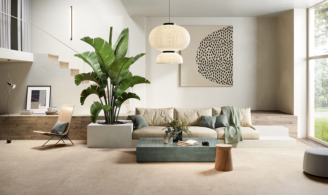 - Solo materie prime naturali per la collezione Sensi, che contiene fino al 41% di materiali riciclati e che nasce da un processo produttivo sostenibile fino al 100% [Florim].