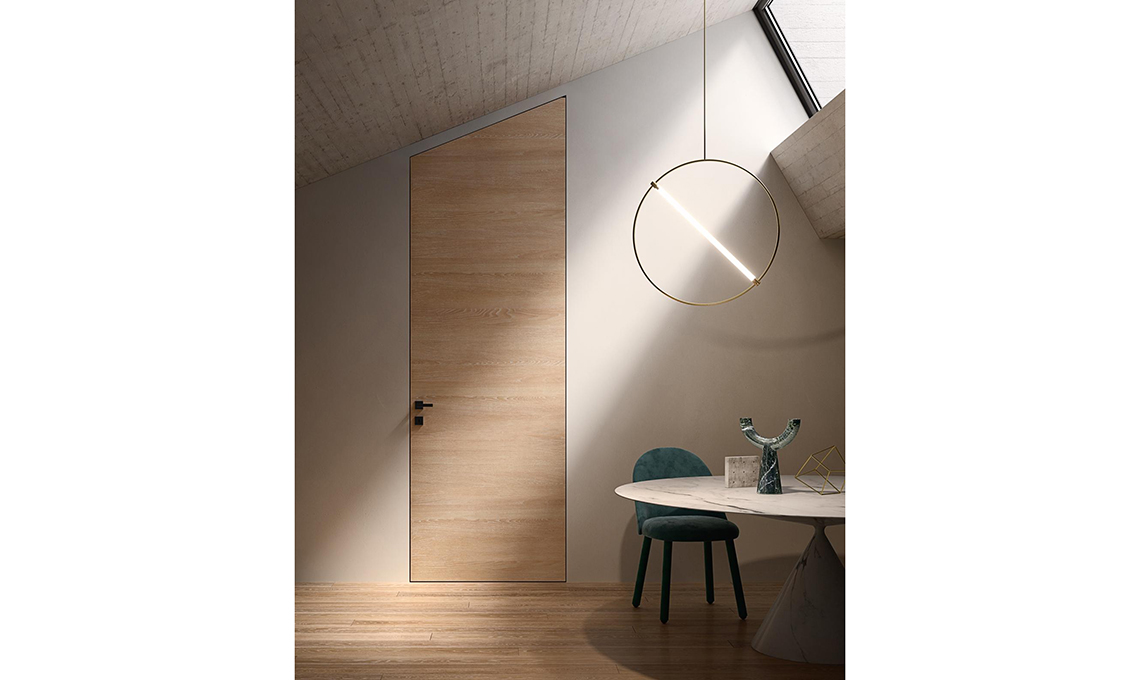 Sto ristrutturando la mia mansarda creando nuovi spazi con pareti in cartongesso e mi piacerebbe installare delle porte molto lineari e in un bel legno venato, che possano seguire l’andamento inclinato del tetto. Alessandra P.