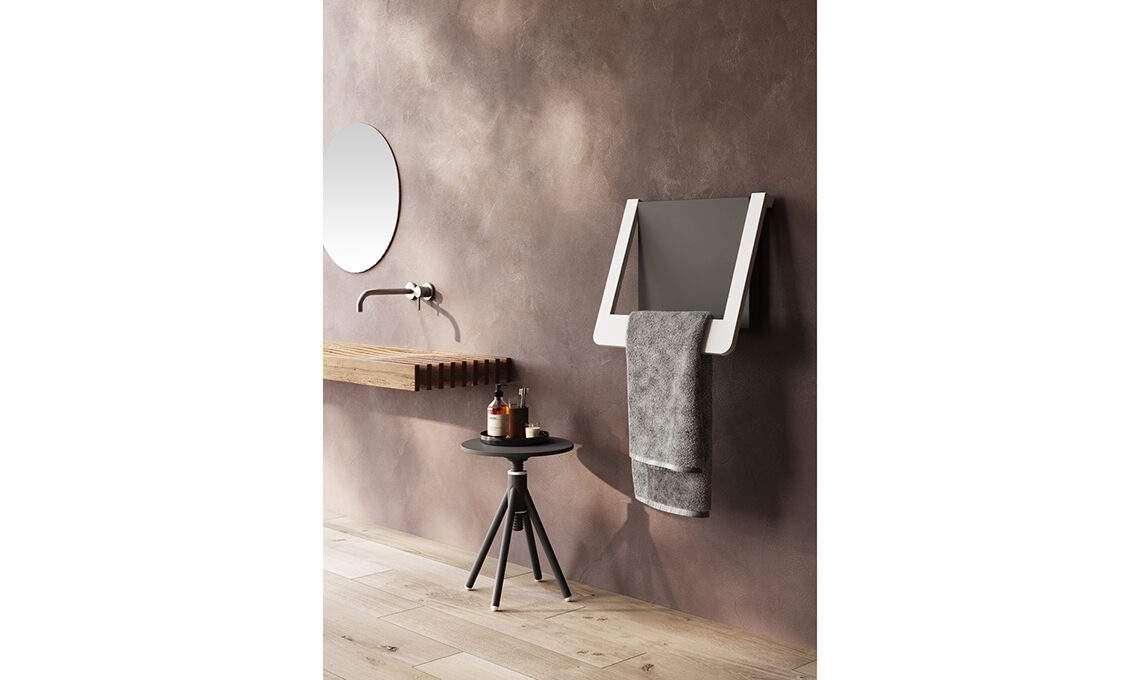 Radiatore Window a piastra riscaldante in acciaio colorato con integrato il porta- asciugamani apribile, disponibile sia mono sia bicolore [Cordivari].