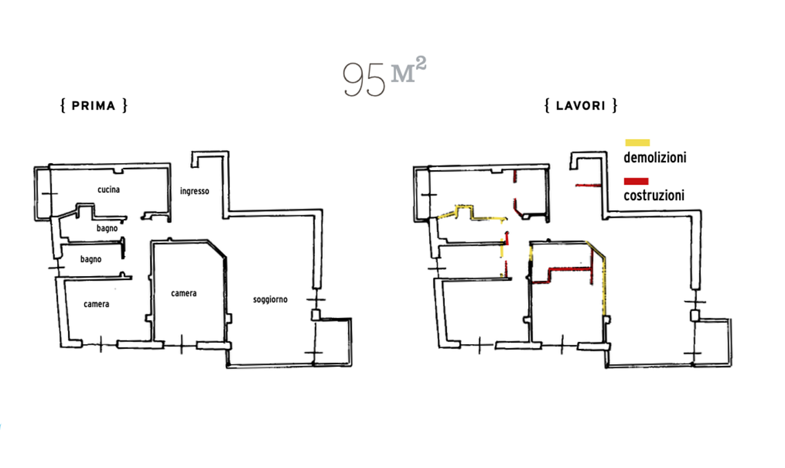 - Demolizioni tramezzi, rivestimenti, infissi, impianti, porte e sanitari €4.300