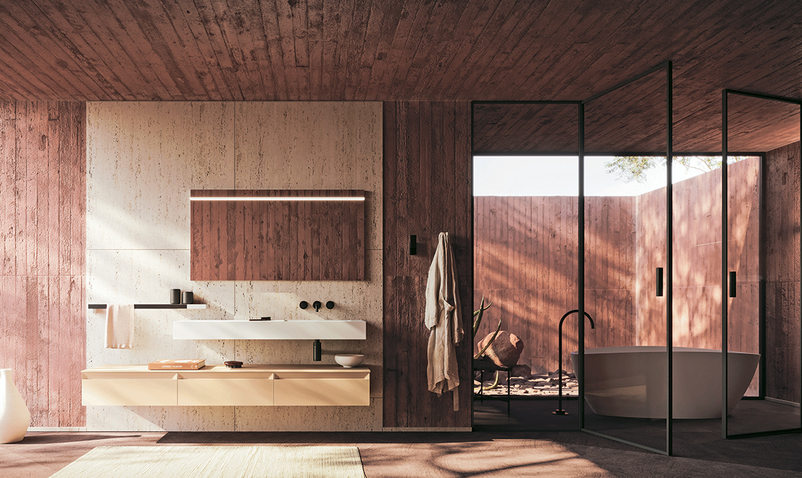 Finestra scorrevole panoramica in alluminio Schüco ASE 51 PD con montante centrale da 32 mm, che crea continuità visiva tra in e out più soglia piana 0-Level che elimina le barriere architettoniche [Schüco Italia].