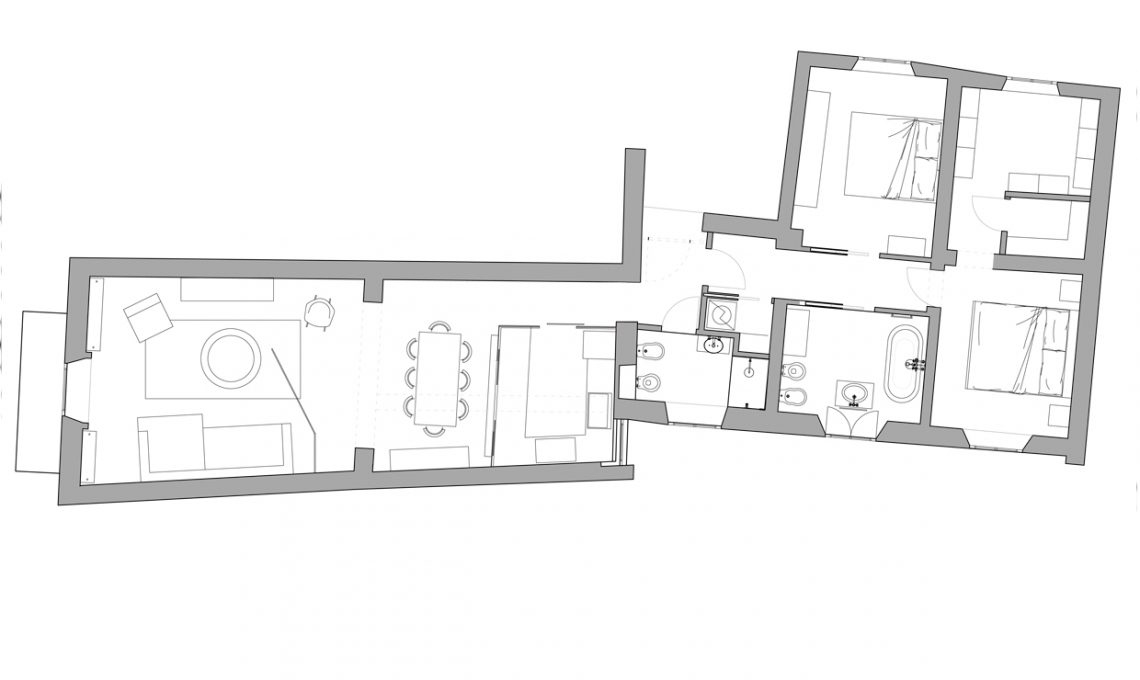 Una tipica casa ‘vecchia Milano’ con ambienti divisi in modo poco razionale si trasforma in un moderno quadrilocale con una suddivisione degli spazi perfettamente funzionale