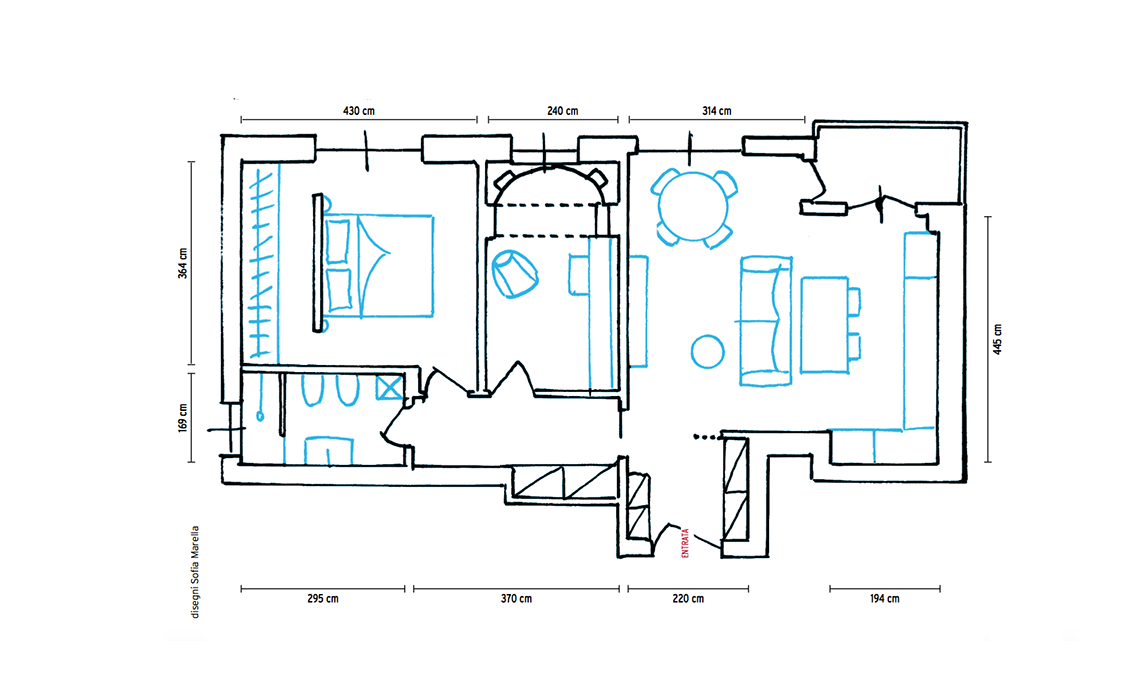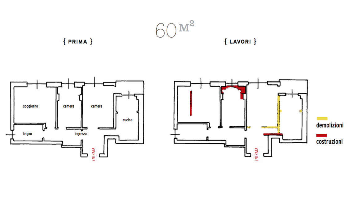 Samo in un trilocale monoaffaccio di 60 mq, luminoso e con un balconcino. I problemi? Gli impianti da rifare, il soggiorno lontano dalla cucina, che invece è accanto alla camera padronale, le stanze piccole e troppo spazio occupato da corridoi e disimpegni. Il proprietario decide di chiedere aiuto all’architetto CF style Chiara Tiberti che, con pochi ma fondamentali lavori, rinnova il tutto in base alle nuove esigenze e ai gusti rétro del padrone di casa.
