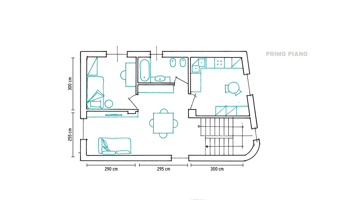Quando si sceglie una villetta su più piani in realtà si abita in tanti bilocali: perciò le idee tratte da un progetto come questo sono versatili e facili da copiare. I proprietari (una famiglia con due bambini) hanno comprato questa casa che aveva solo i muri esterni: la suddivisione degli interni proposta dal costruttore non piaceva, così con l’aiuto dell’architetto Filatrella hanno rivisto gli spazi.