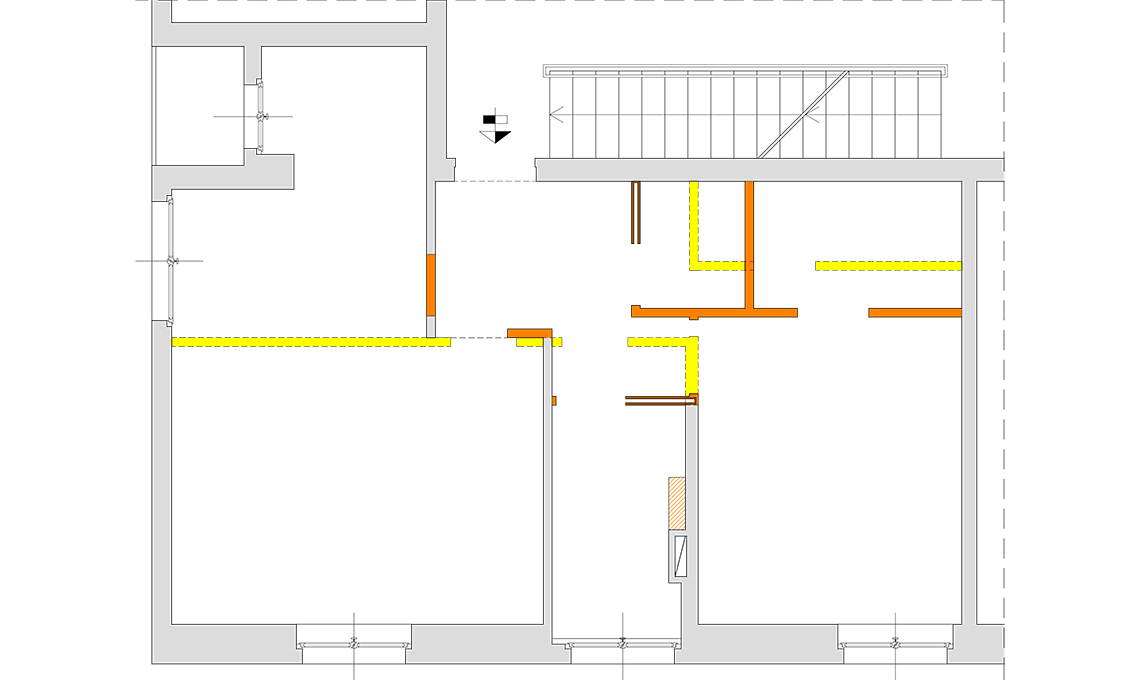 Lo stato di fatto: i locali erano angusti e poco sfruttabili, ancora allo stato originale degli anni 70.