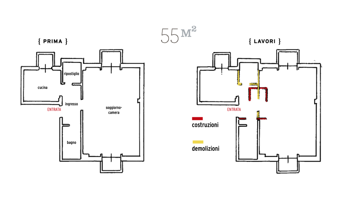 Un monolocale mansardato degli Anni ’70 con cucina a parte, in stato di totale abbandono: un nostro lettore lo scova a Milano e decide che può essere un buon investimento se messo nelle mani giuste per una ristrutturazione che lo ridisegni. L’ambiente principale ospita sia la zona giorno sia l’area notte e ci sono una cucina separata e perfino un ripostiglio... L’architetto CF style Alice Palese capisce subito che qui c’è una grande possibilità di riorganizzare gli spazi che oltretutto prendono luce e aria da ben tre portefinestre che danno su altrettanti balconi.