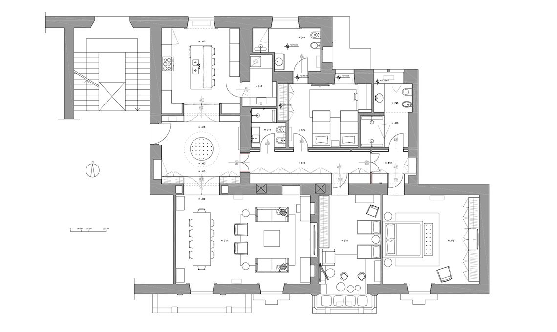 Il punto di partenza è stato aprire lo spazio che collega visivamente tutte le stanze, creando un gioco di viste che facessero intuire, senza svelare completamente gli interni.