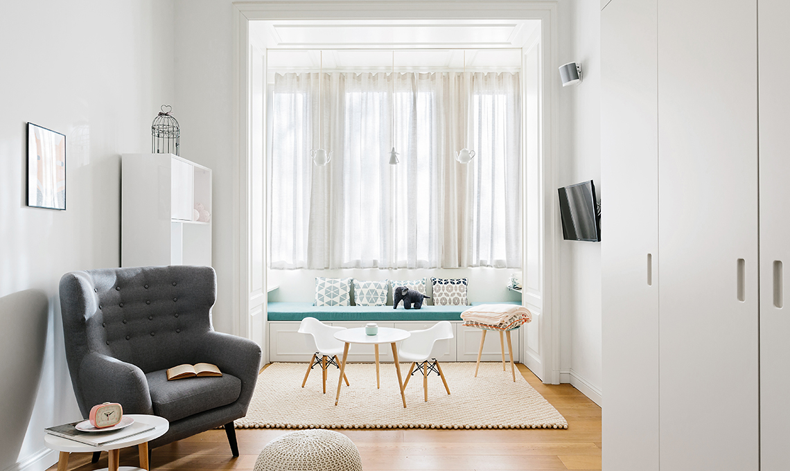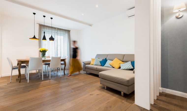 L'appartamento ristrutturato dallo studio Nomade Architettura e Interior Design si trova in una zona residenziale caratterizzata da palazzi del primo dopoguerra a pochi passi dal centro di Milano. In particolare la casa si affaccia su un parco ed è ricca di preesistenze degli anni 20 che gli architetti sono riusciti a recuperare e a mantenere abbinandoli a soluzioni, arredi e complementi di gusto contemporaneo in un mix raffinato tra eleganza inglese e design italiano di grande impatto per una famiglia composta da 6 persone (padre, madre e 4 bambini da 0 a 7 anni).