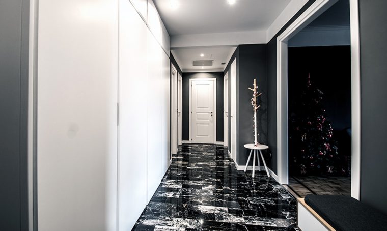 L'ingresso, di rappresentanza, è un elegante e prezioso scrigno bianco, che si apre da un lato verso il soggiorno, dall'altro verso la cucina e in fondo sul corridoio della zona notte.