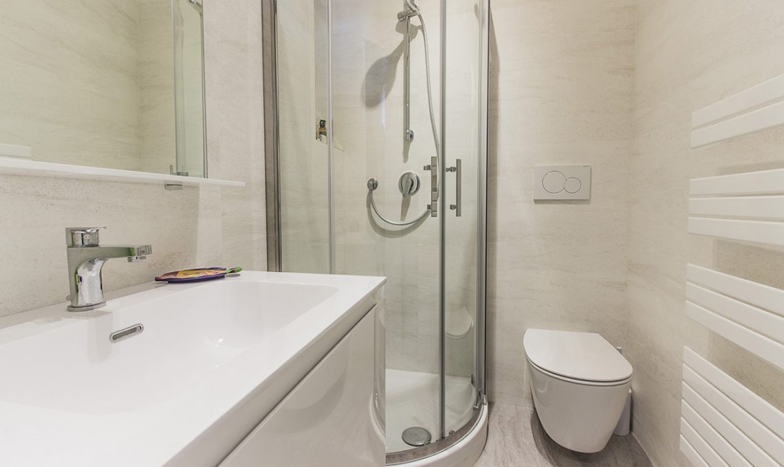 Il bagno padronale viene leggermente ridimensionato e dotato di maxi-doccia, mobile lavabo più sanitari.