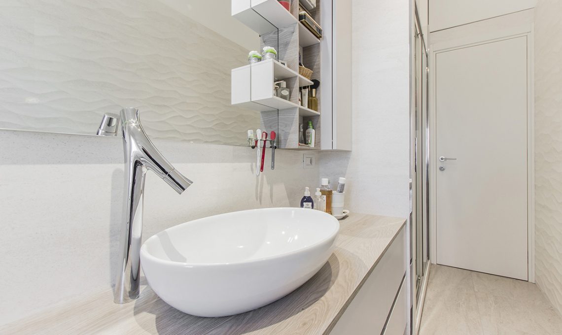 Per i due bagni (così come per la nuova lavanderia) è stato scelto il total white per sanitari [Connect di Ideal Standard], mobili e rivestimenti, così da dare più luminosità ai locali.