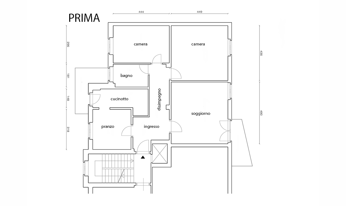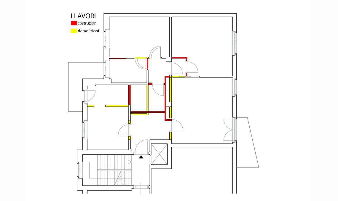 L’appartamento, con un disimpegno enorme, necessitava di una completa ristrutturazione, anche degli impianti.