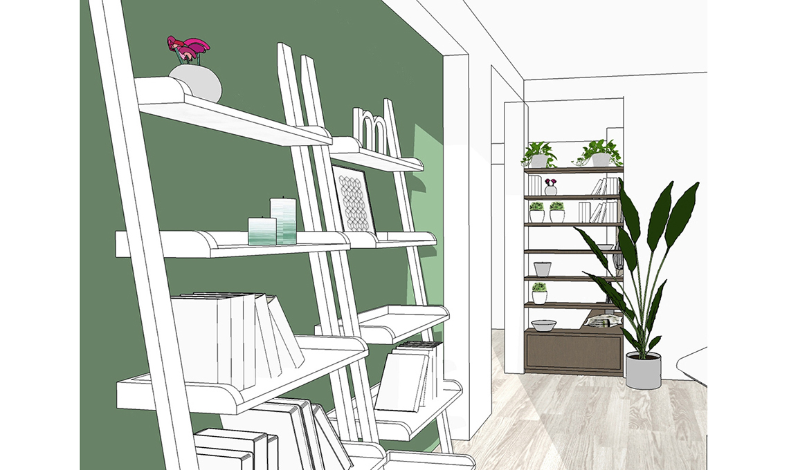 Un rendering dell'ingresso: per rendere più intimo il soggiorno,