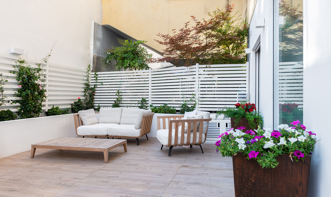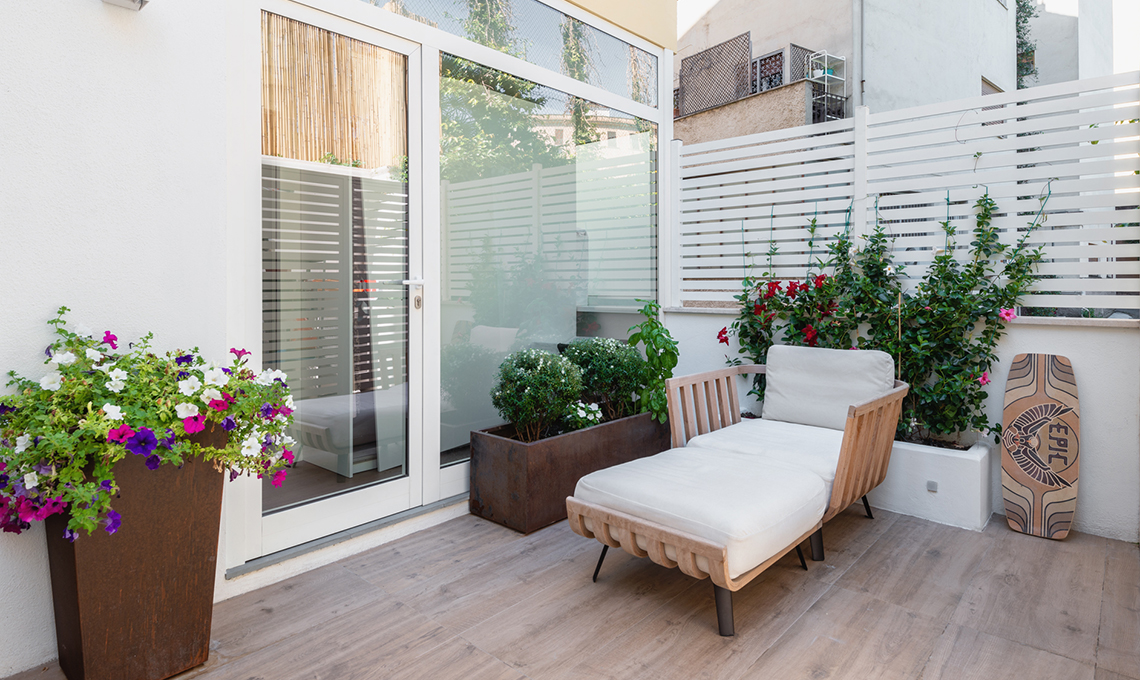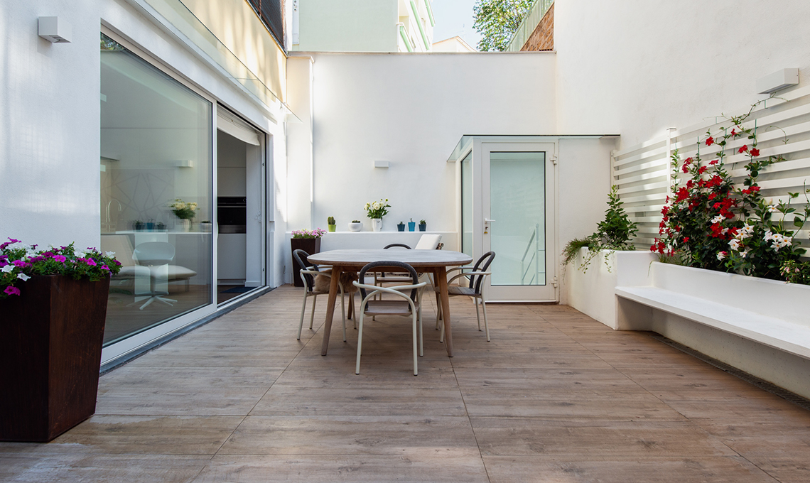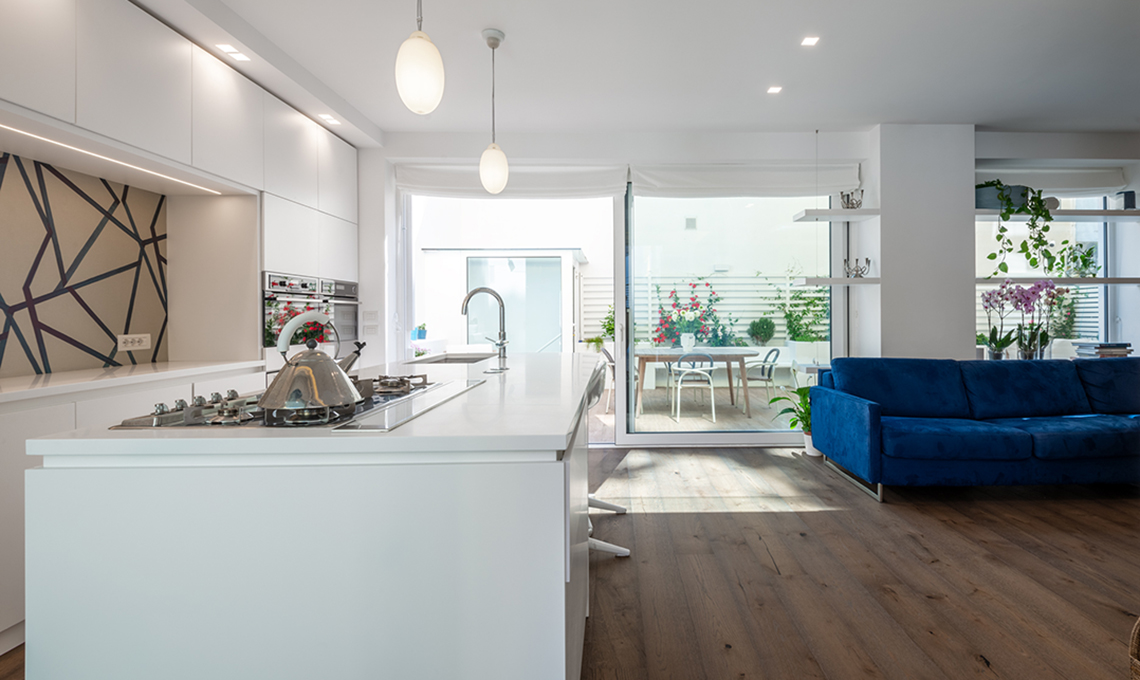 Un bilocale affacciato su due cortili privati incastonato tra i palazzi è stato ristrutturato per ricavare tanta luce e locali in più: cameretta e secondo bagno, più cucina e maxi living all'aperto!