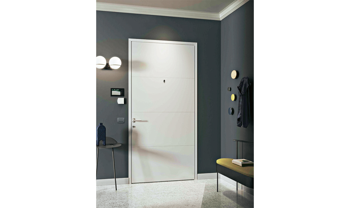 Porta d’ingresso in alluminio Schüco AD UP 90, classe anti- intrusione RC3, dalle elevate prestazioni termiche e acustiche, con pannellatura personalizzabile [Schüco].