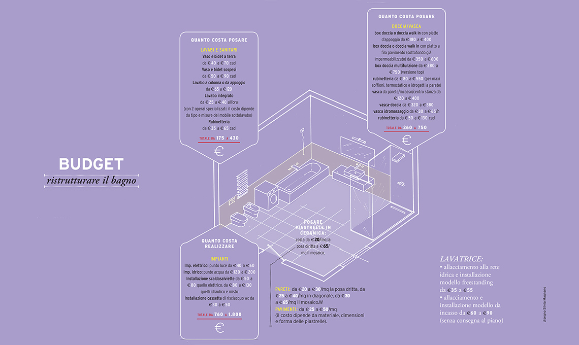 - rubinetteria da €80 a €550 (per maxi soffioni, termostatico e idrogetti a parete)
