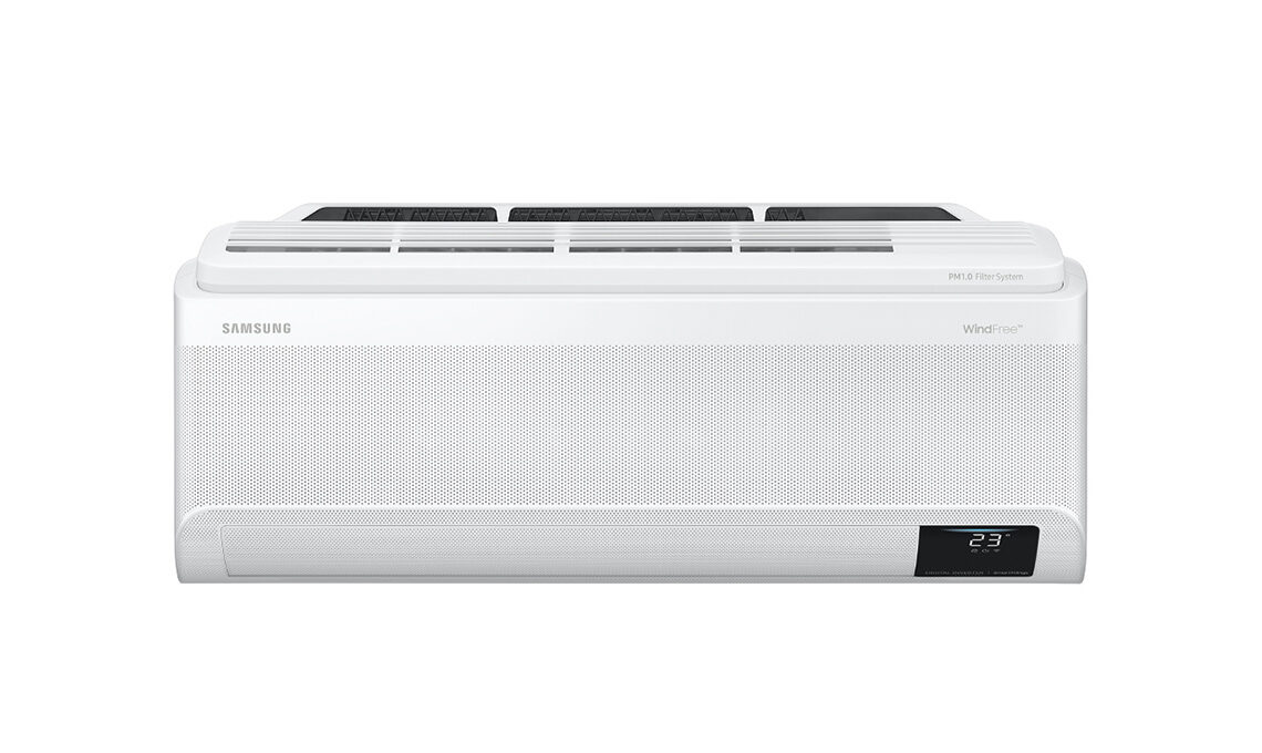 Controllo remoto anche vocale, WindFree TM Pure 1.0 ha filtro elettrostatico per polveri sottili; evita getti d’aria diretti. Classe A++, 9.000 Btu/h [Samsung, cm 89x21,5x30h da € 1.199].