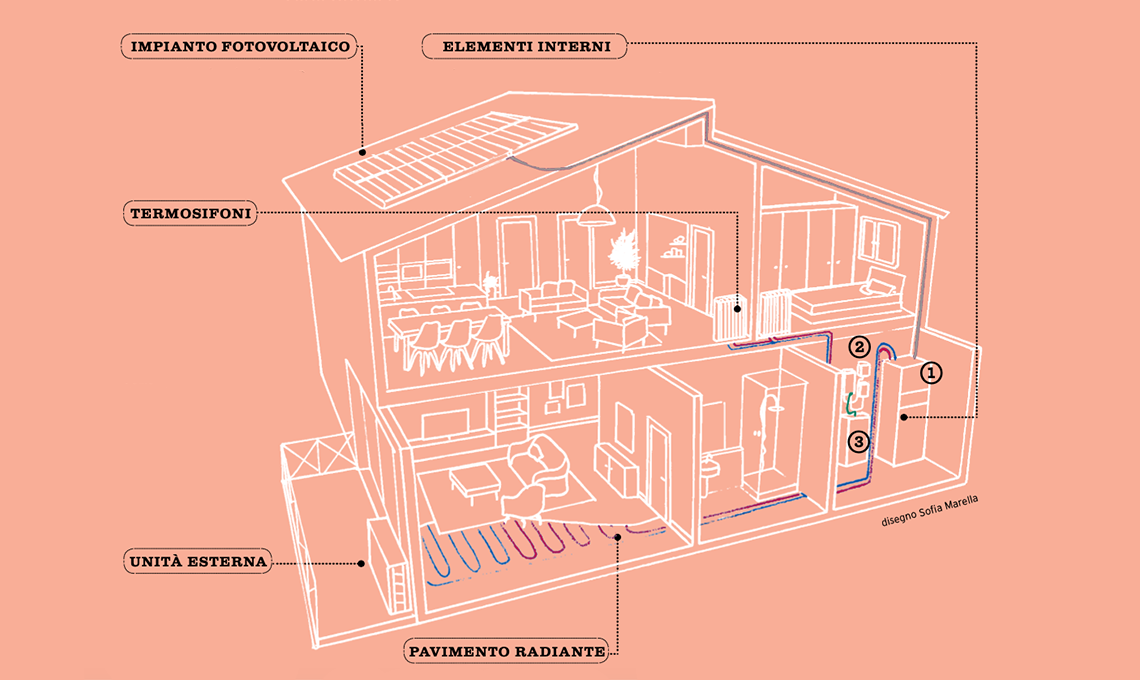 Oggi esistono modelli di pompe di calore ad alta temperatura che sono in grado di scaldare l’acqua dell’impianto fino a 70 °C: con questi modelli si possono mantenere i caloriferi esistenti, senza dover rifare tutto l’impianto. Basta sostituire la caldaia con la pompa di calore.