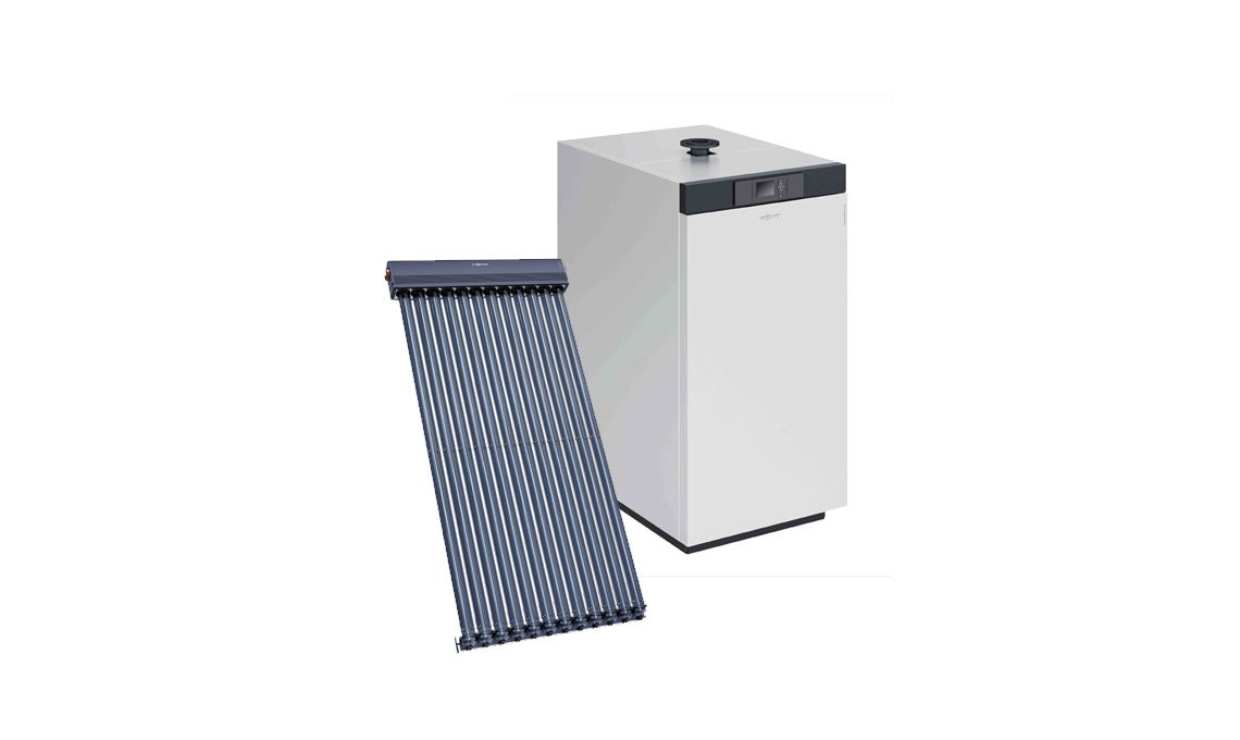 Per il condominio: caldaia a condensazione a gas Vitocrossal 100 abbinata ai pannelli solari termici sottovuoto ad alto rendimento Vitosol 300-TM. Performante e a basse emissioni, la caldaia con potenza da 80 a 318 kW occupa solo 0,8 mq [Viessmann]