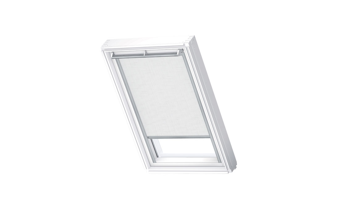 Finestra per tetti GGL elettrica, qui con tenda interna filtrante elettrica. Le sue qualità termoisolanti sono dovute al sistema ThermoTechnology™, che prevede l’inserimento lungo il perimetro di pannelli in EPS, un materiale 3,7 volte più isolante del legno che ne potenzia isolamento e tenuta [Velux, cm 55x78]