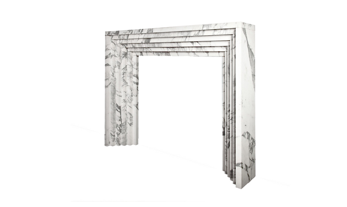 Il camino d'epoca con la cornice in marmo venato è il punto focale della stanza. Pareti, cornice del camino, pavimento e copriletto in varie nuances di bianco. Foto Living Inside.