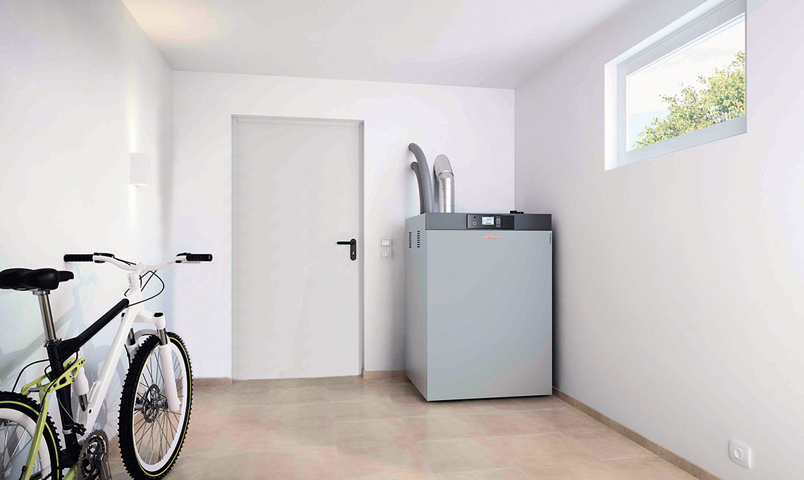 Caldaia a pellet compatta Vitoligno 300-C, completamente automatica, in classe A+ e corredata di ‘Certificazione Ambientale’. Assicura rendimenti elevati fino al 96% ed è gestibile da remoto tramite l’App