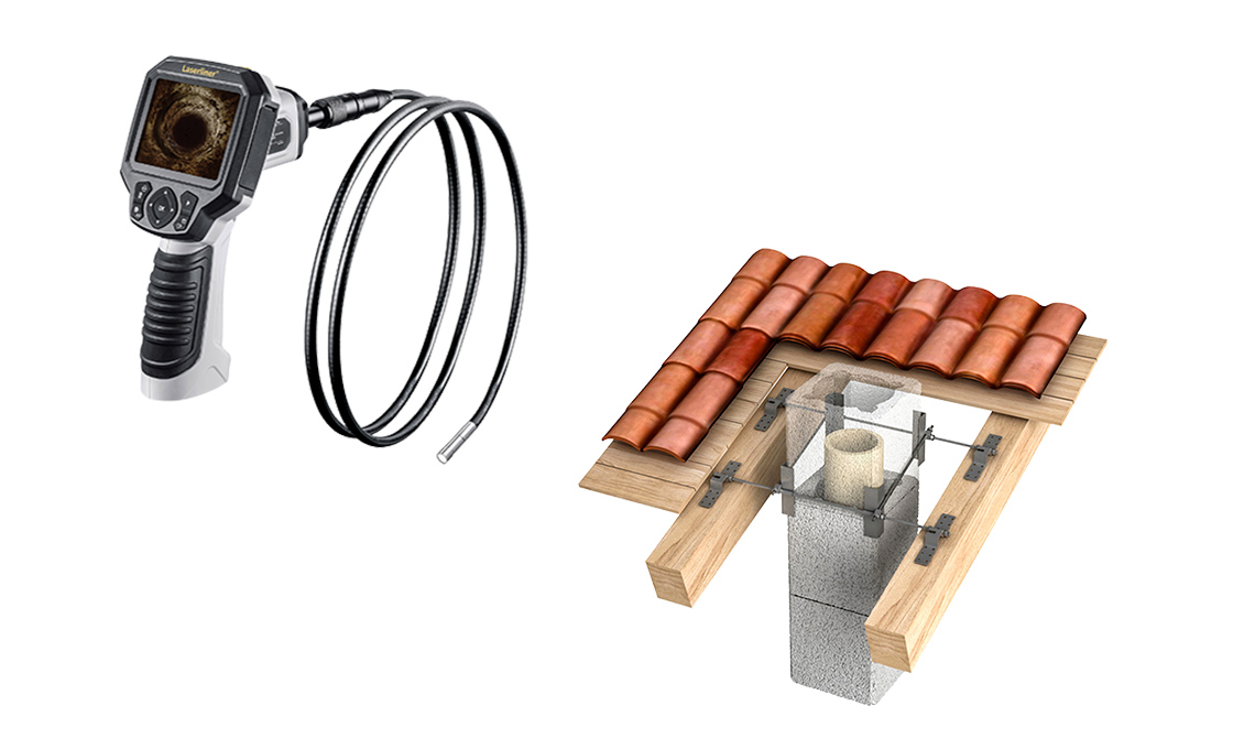 videocamera d’ispezione VideoScope One, con zoom digitale e sonda da 6 mm lunga 15 metri [Laserliner, da €111], raccordo tra copertura e condotto di [Camini Wierer]