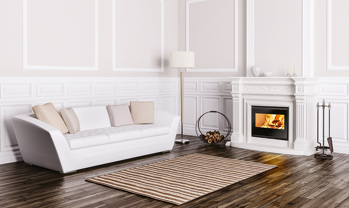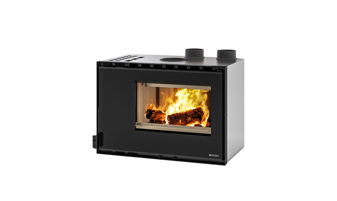 Semplice da installare: l’inserto a legna 75/58 riduce i tempi e i costi della posa in opera nel camino esistente. Con rendimento dell’80%, riscalda 150-260 mc [Piazzetta].