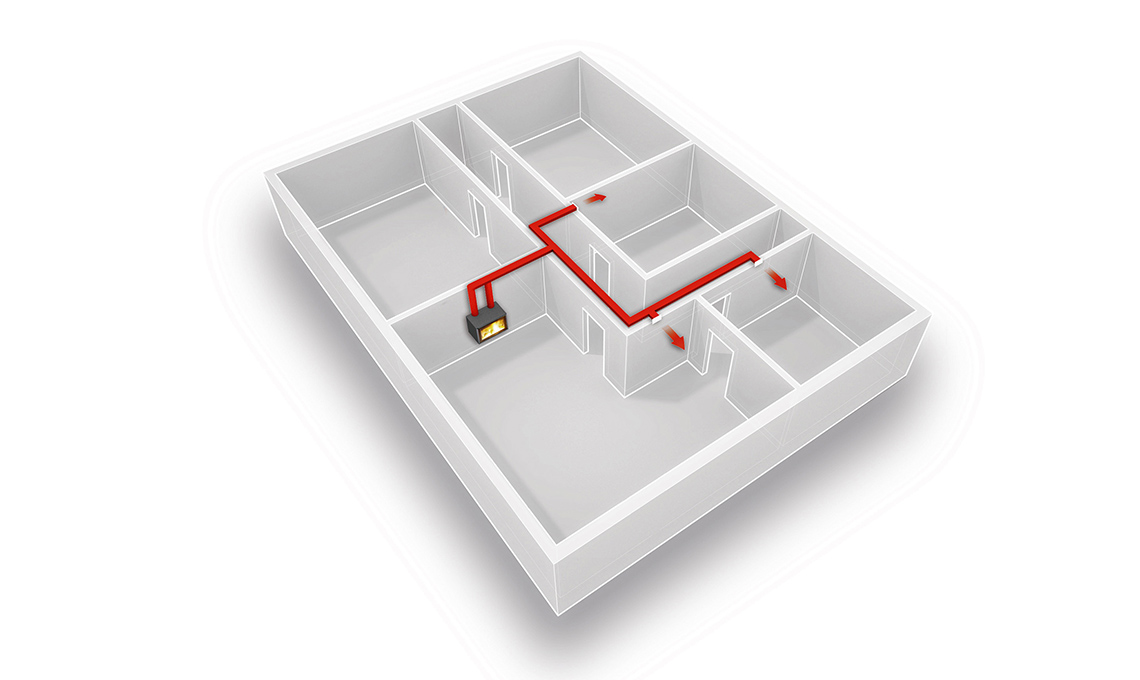 A legna: l’inserto 80 High Pressure riscalda 226 mc e, grazie alla ventilazione canalizzabile di serie, porta il calore in un’altra stanza [LaNordica Extraflame].