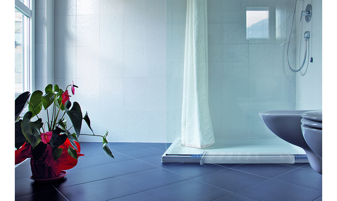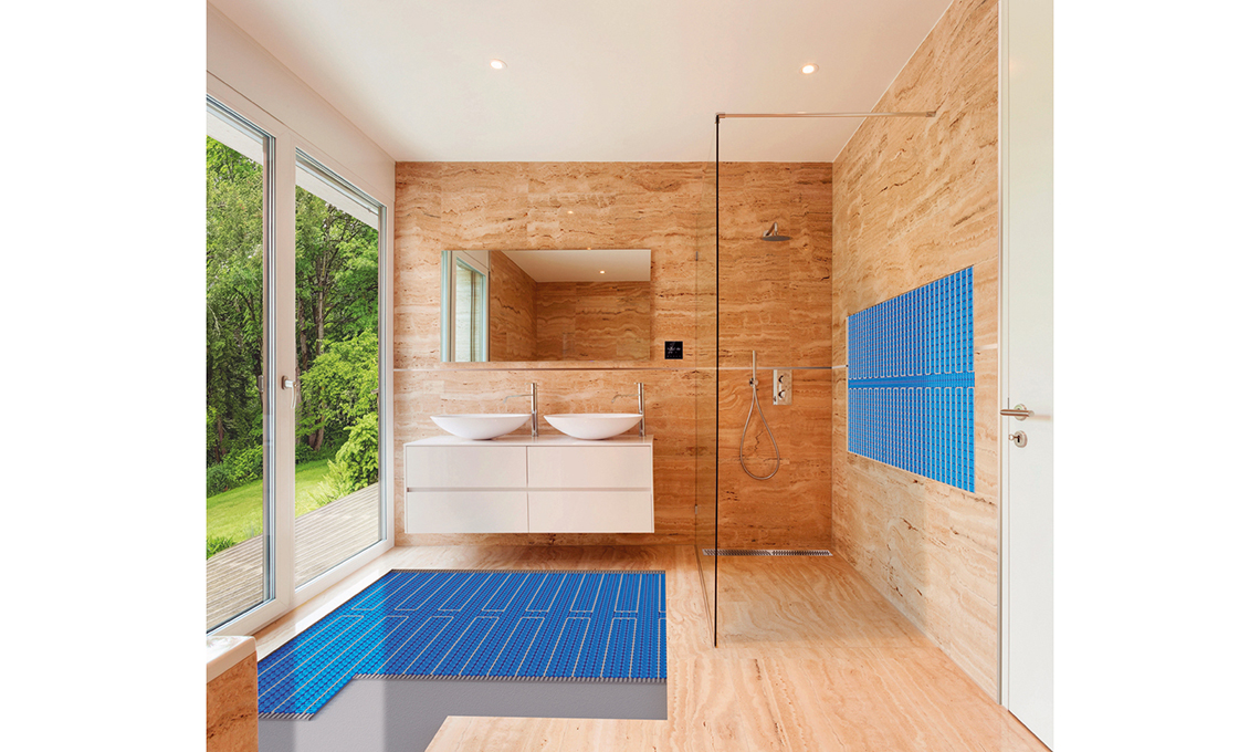 istema di riscaldamento elettrico ultrasottile per pavimenti e rivestimenti Prodeso® Heat Grip System, regolabile da remoto [Progress Profiles, per bagni da 6 mq € 150/mq posato].