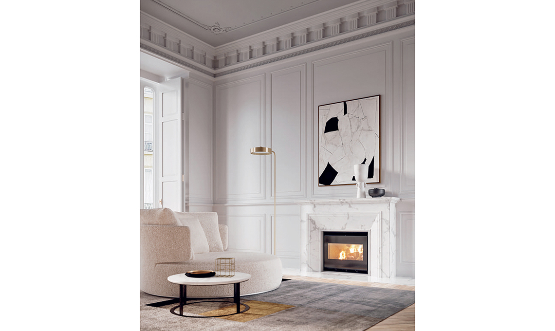 Il focolare a legna Ecopalex® GTM 70 ripristina i vecchi camini con interventi murari minimi e rapidi. È canalizzabile grazie al kit di ventilazione centrifugo [Palazzetti, cm 62x50x50h € 3.147 incluso il kit].